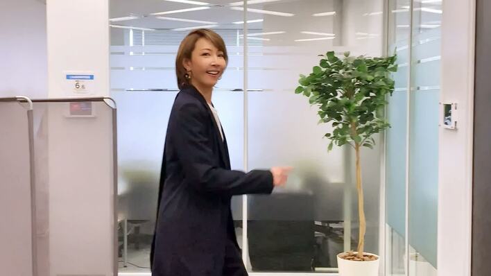 柚希は控室から出てくると、お茶目な笑顔を見せながら会場に移動。衣装も、ダークカラーのジャケットに白いインナーというシンプルな装いにチェンジ。