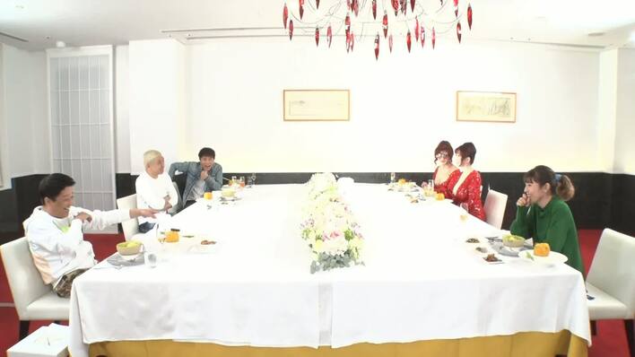 「ウォークインクローゼットで150平米くらい」「バスルームは4つ」「猫ちゃんのお部屋で20畳くらい」という規格外の暮らしぶりが明らかになり、浜田と松本は、無言で顔を見合わせて驚く。