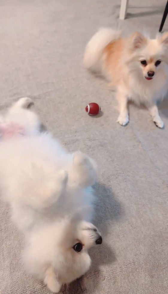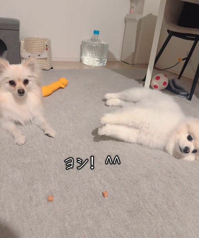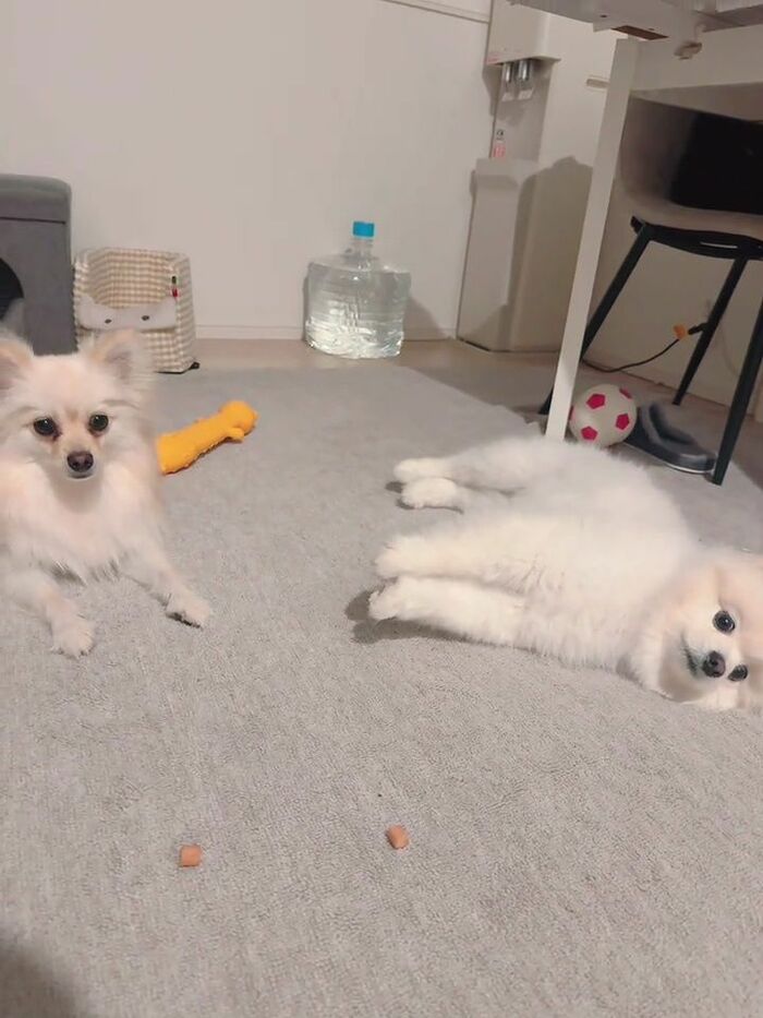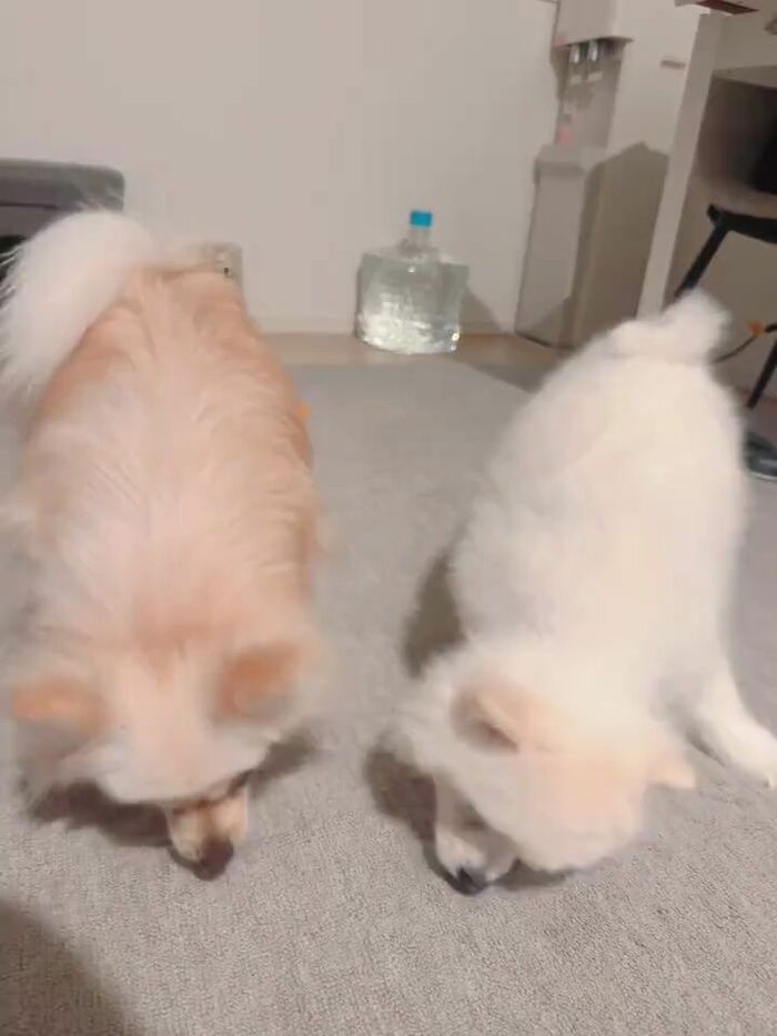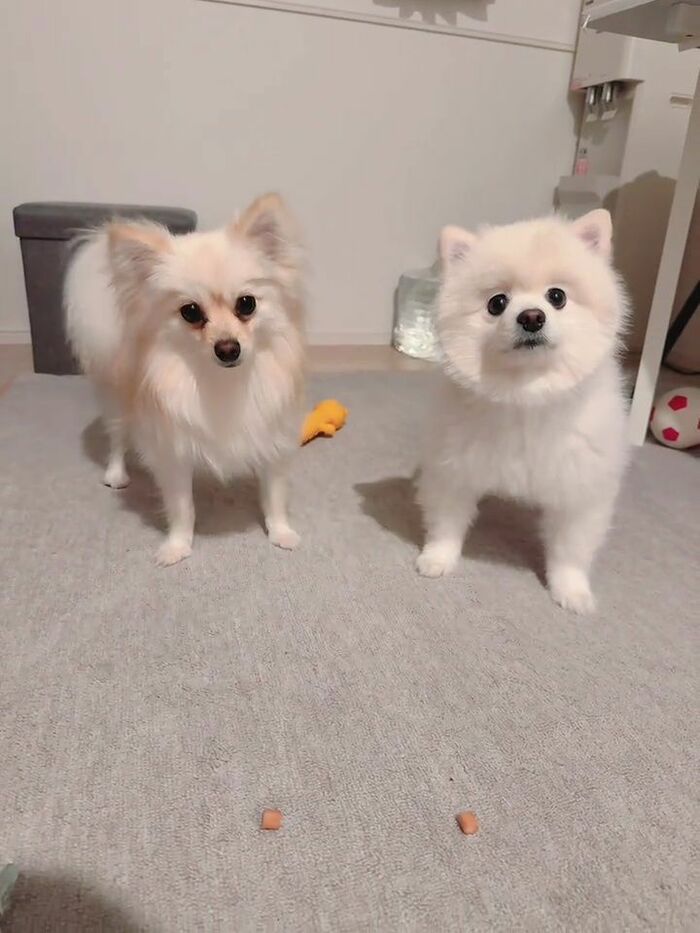 今回話題になったのは、投稿者である飼い主が「うちのワンコの伏せなんか違う」というコメントとともにTikTokに投稿した、2匹のポメラニアン「ウニ」くんと「ベア」くんの動画。
