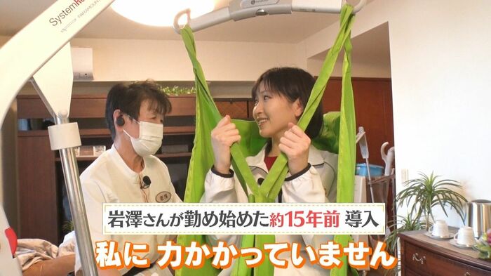 高齢の岩澤さんには大変な力仕事ですが、実は岩澤さんが介護士を始めた15年ほど前から、介護現場に「介護リフト」が導入されたのです。