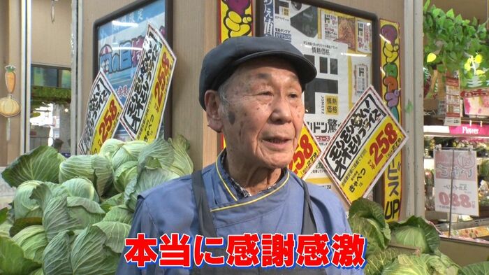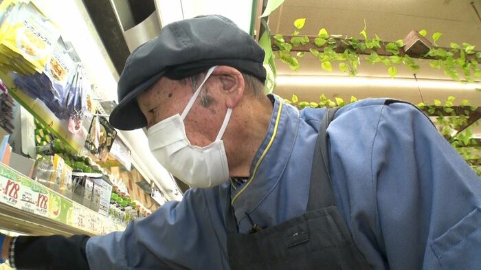 約60年、青果一筋で働いてきたという吉田富男さんは、82歳になってなお、「ドン・キホーテ」の青果売り場で働いています。