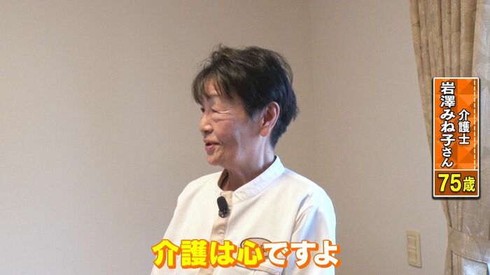 千葉市にある老人ホーム「グッドタイム リビング 千葉みなと/駅前通」で、介護士として働く、岩澤みね子さん(75)。