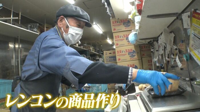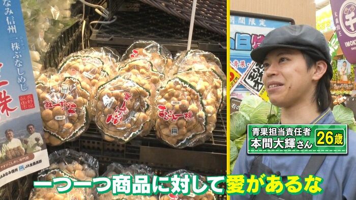 青果売り場の責任者の年齢は26歳。若いスタッフも多く働く中で、手慣れた様子で商品作りをし、値札を貼って丁寧に陳列していきます。