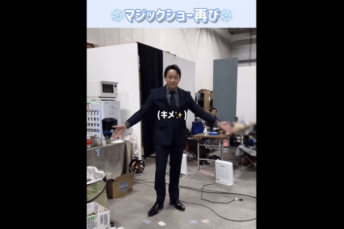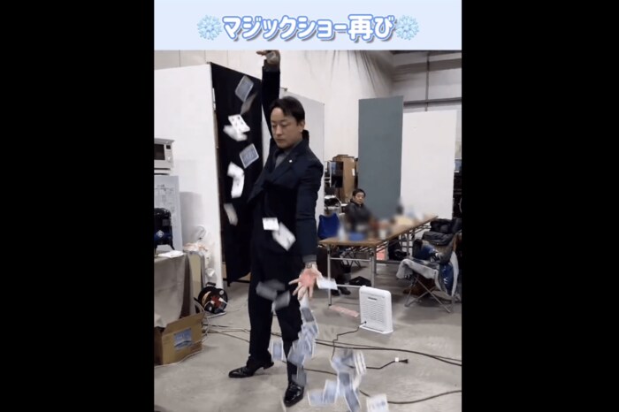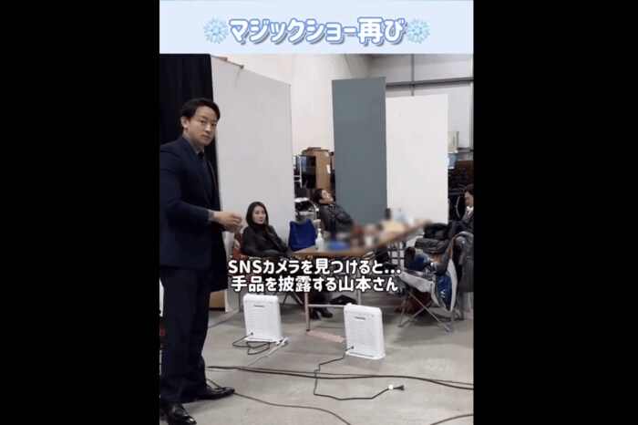 まずは、「華麗なトランプさばきかと思いきや…衝撃のオチにSNSカメラも思わず動揺!」という文章とともに山本さんが再びマジックショーを披露する様子を投稿。