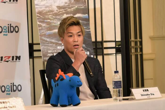 太田忍選手は「コロナ禍の中で試合をさせていただきありがとうございます」と関係者に感謝しながら「東京五輪では、会場で金メダルをとる選手たちを目の前で見て、僕も東京五輪で金をとるつもりでいたので、モチベーションが上がりました。五輪で金は無理でしたが、格闘技で世界一を目指すというのは、劣らないこと。格闘技の世界で一番を目指しますので試合を楽しみにしてください」と熱く語った。