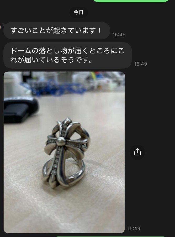 スタッフからは、「すごいことが起きています!ドームの落とし物が届くところにこれが届いているそうです。」というメッセージとともにELLYさんのものと思われる指輪の写真が。