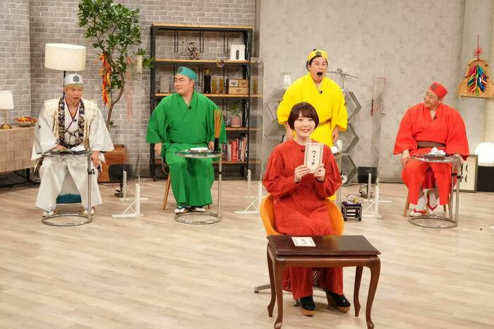 まずは、映画「東京リベンジャーズ」とコラボした、コント「東京むちゃぶリベンジャーズ」で幕開け!長田、松尾、せいやがそれぞれ映画に登場するキャラクター、タケミチ、三ツ谷、パーちんに扮(ふん)し、映画でキサキ役を演じている間宮から、次から次へと容赦なく即興ショートコントをむちゃぶりされる。それぞれが、実際に劇中で使用された特攻服を着用している。