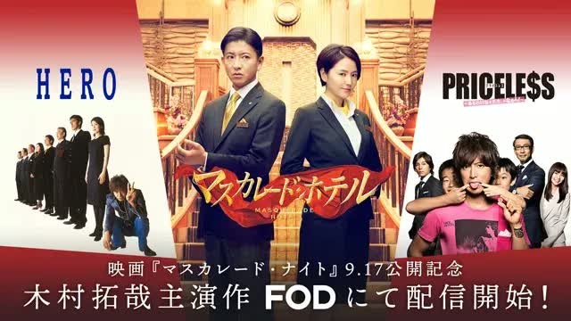 9月17日(金)より、木村拓哉主演の映画「マスカレード・ナイト」が全国劇場公開されるのを記念し、FODでは、木村拓哉の過去主演作の中から、ドラマ『HERO』シリーズ3作品、ドラマ『PRICELESS~あるわけねぇだろ、んなもん!~』、シリーズ前作となる映画「マスカレード・ホテル」を、FODプレミアム対象作品として、8月13日(金)0時から配信開始することが決定。