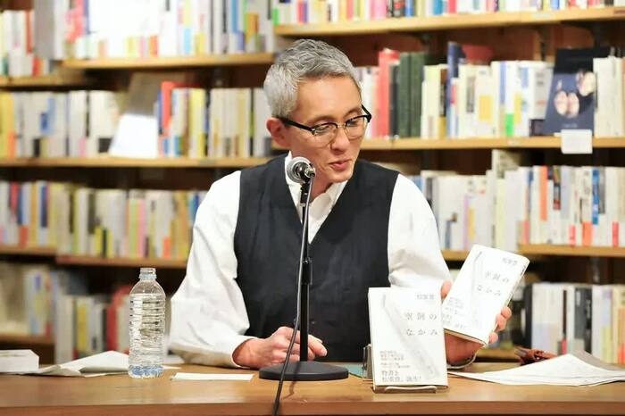 その後、居ずまいを正し、新刊に収録された小説の一編を朗読。抑揚をつけ、読者が思わず吹き出すだろうシーンも生真面目に。「その瞬間の気持ち」にこだわる俳優のわずかな息遣いまでも伝わる朗読劇を生で聴く、贅沢な時間が流れた。