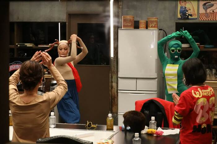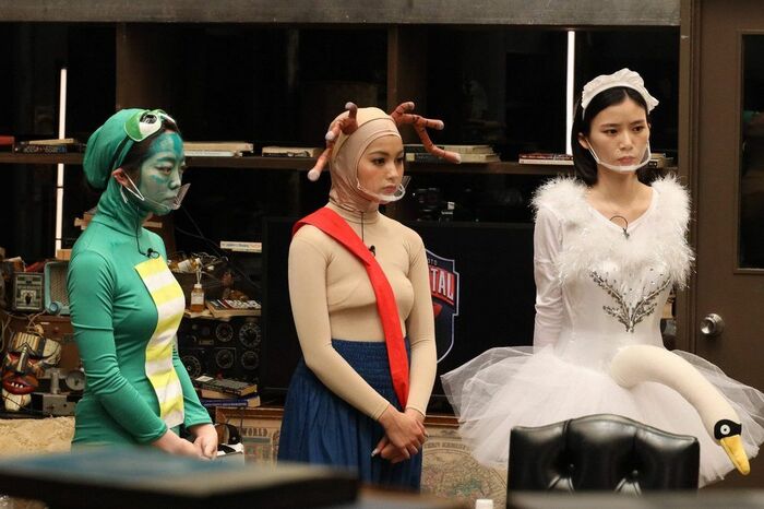 終盤、峯岸・ウイカ・金田・朝日・ゆきぽよの5人での優勝争いになると、全員が“ビジュアル重視”の戦略へ。ウイカ・金田は2人で“ストッキング相撲”を、朝日はかつて志村けんが流行らせた“白鳥コスチューム”に着替え、笑わせ合いサバイバルはさらに熾烈な展開に。