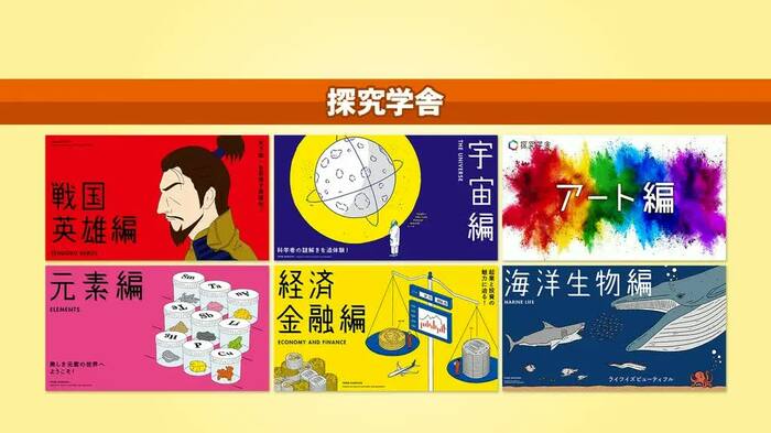 探究することが見つからないという子供に向けた「探究学舎」という塾も紹介された。ここでは、「アート」「元素」などについてクイズのように学びながら、子供の探究心を伸ばす授業が行われているという。