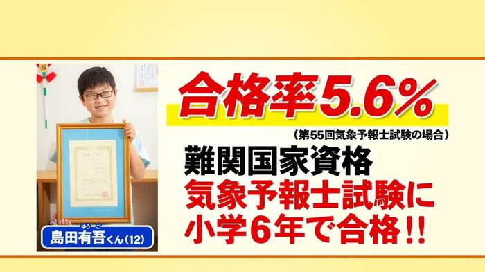小6で「整理収納アドバイザー1級」の資格を取得した清水麻帆さん(現在中2)や、同じく小6の時に「気象予報士試験」に合格した島田有吾さん(現在中1)もリモートで登場した。