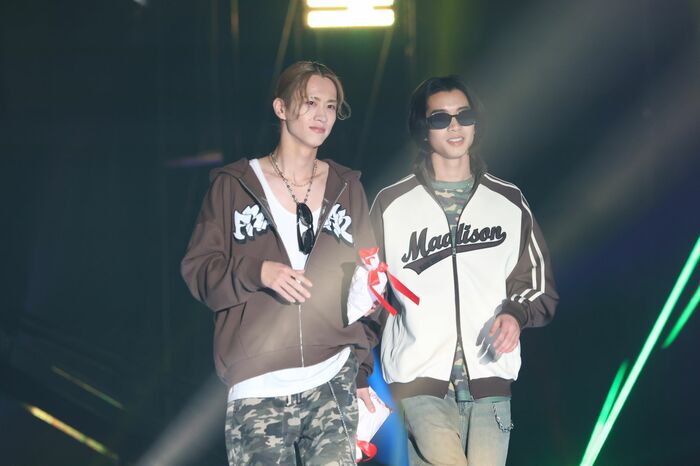もーりーしゅーと(森英寿さん、森愁斗さん)は登場するやいなや、黄色い歓声が。ランウェイのトップで、英寿さんが愁斗さんの腕に抱きつきます。愁斗さんは少し照れたような表情を浮かべながらも、ニコニコ。