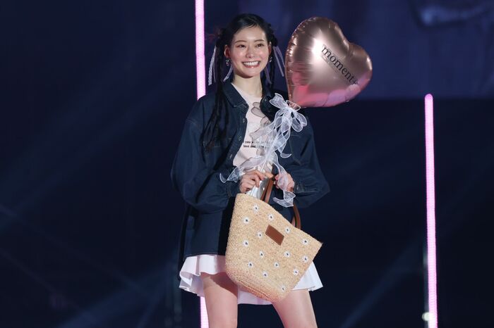 『moment+』のトップバッターを務めた岡崎紗絵さんは、俳優としても活躍中。ステージに姿を見せると観客から「うわーっ!」と大きな歓声があがり、人気の高さがうかがえます。