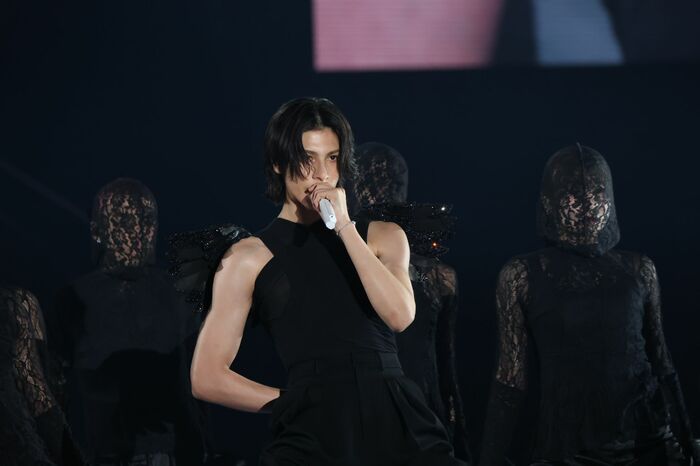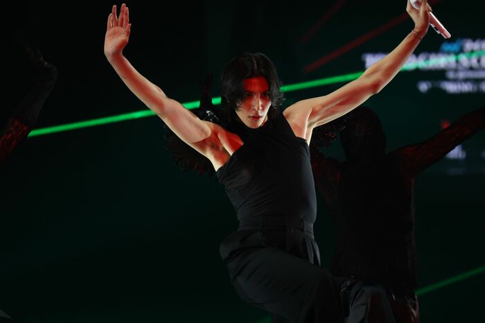 そんなラウールさんは、荘厳な音楽のなか、全身ブラックの衣装を身にまとい、背中に羽をつけた神秘的なスタイルでステージに登場。