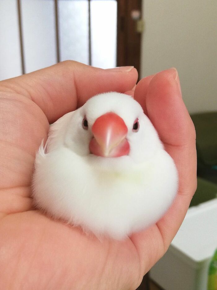 大好きな飼い主さんの手の中で落ち着いてみたり!甘えん坊なため、普段からべったりくっついているそうです。手のひらに乗った際には、羽づくろいをしたり、眠ったりして過ごすといいます。