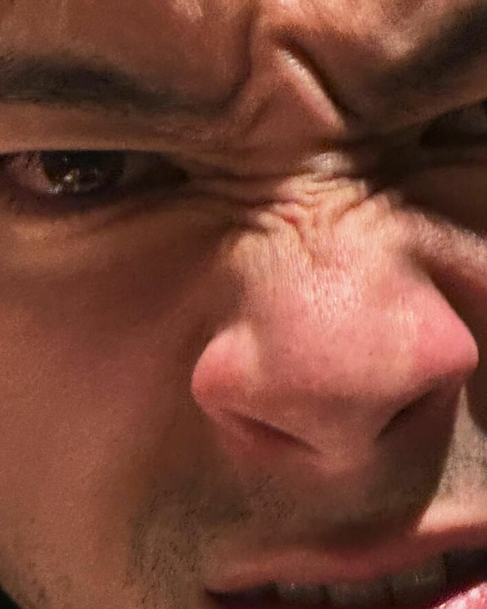 「ラージャンみたいな顔してる」と、ゲームに登場するモンスターの顔に負けないぐらい、闘志がみなぎる“超どアップ”の山田さんの姿が公開されています。鼻にしわを寄せ、鋭い目力をカメラに放つ様子は、なんとも迫力が感じられますね!