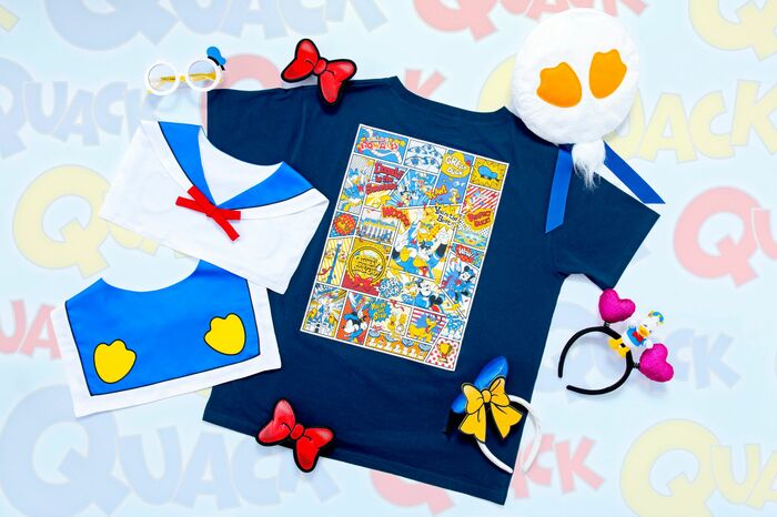 さらに、ドナルドらしいセーラーデザインの付け襟や、黄色いリボンが印象的なカチューシャなどが登場。パーク内でたくさん写真を撮りたくなっちゃいそうですね♪