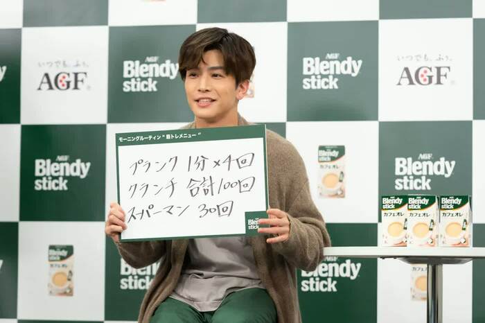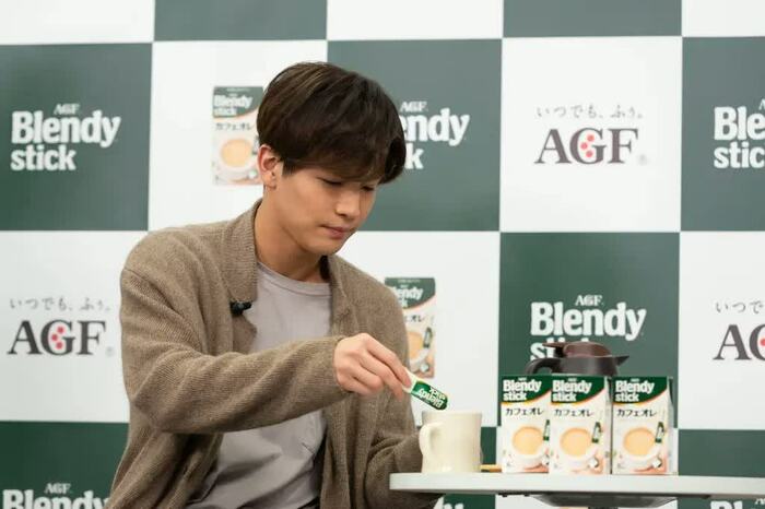 そして各自で用意した新商品のカフェオレを作り、岩田の「いい朝はやさしいカフェオレで。ブレンディ!」の掛け声にあわせて、全員で朝の挨拶を。ひと口飲んだ岩田は「ホッとしますね。ミルクの甘みが感じられて朝にぴったりですね」と笑顔を見せた。