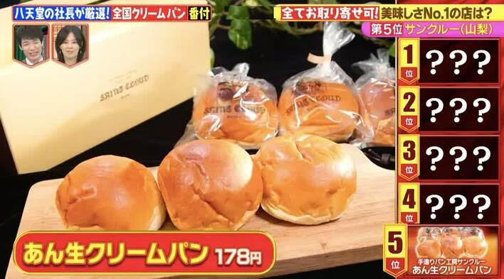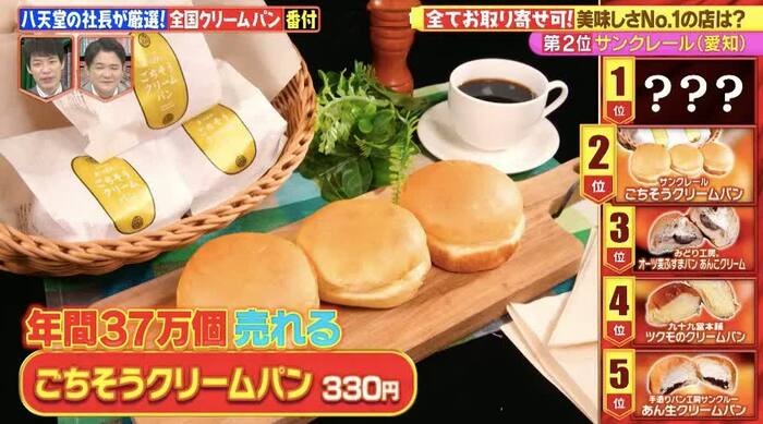 新感覚のスイーツパンとして人気の「八天堂」の森光孝雅社長が、全国のクリームパンを調査し、番付を決定。トップ5に選ばれた商品は、すべてお取り寄せが可能だ。