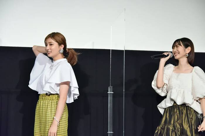 イベント後半では、スケジュールの都合でこの⽇の舞台挨拶に参加できなかった共演者の堀⽥真由と坂東⿓汰から、サプライズでコメントと質問が寄せられた。