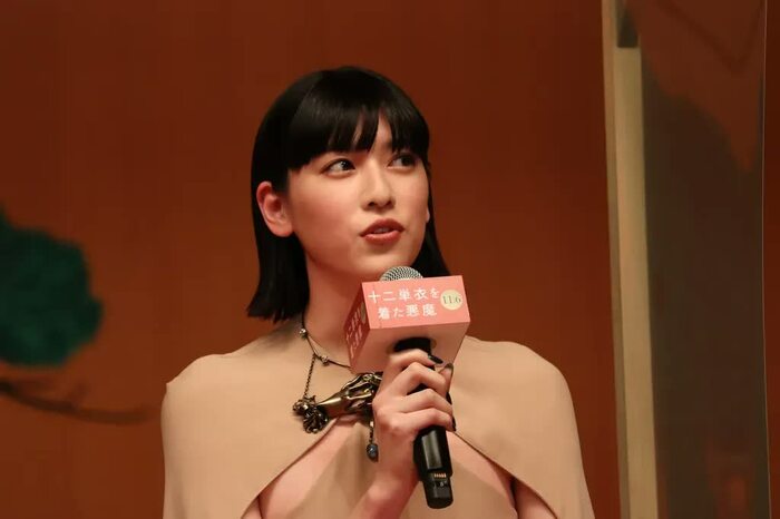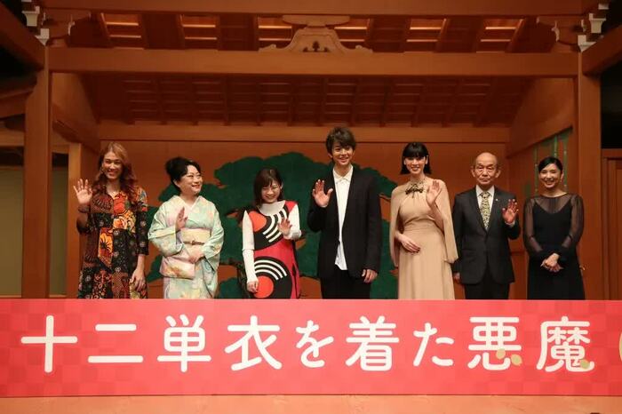 黒木瞳監督がメガホンをとり、伊藤健太郎が主演を務める映画「十二単衣を着た悪魔」の完成報告会が10月20日(火)に都内で行われ、伊藤と三吉彩花、伊藤沙莉、山村紅葉、笹野高史、LiLiCo、黒木監督が登壇した。