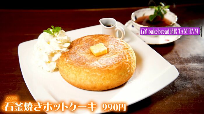 こちらのお店で大人気なのが、厚さ約5センチのコロッと丸いフォルムがかわいいホットケーキ。スキレットに入れ石窯で20分丁寧に焼き上げています。気になるお味は…
