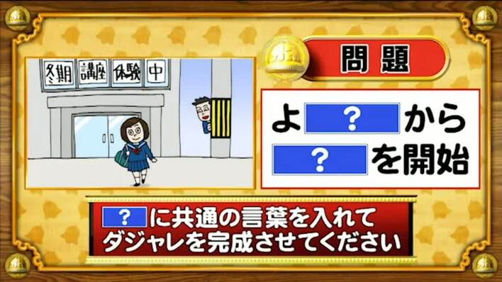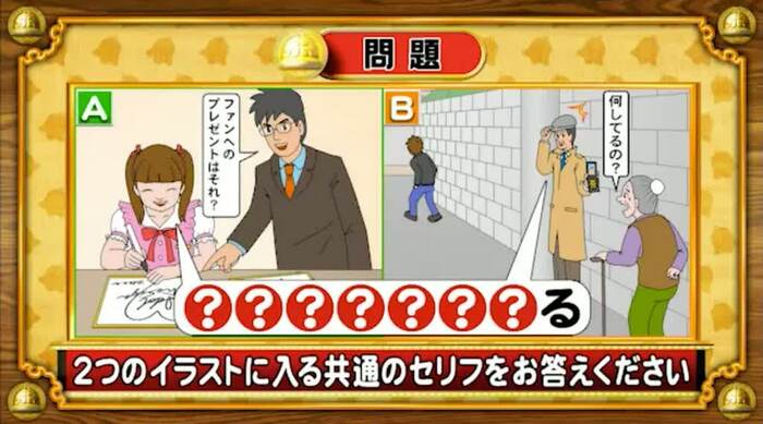 最後は、共通セリフ問題。次の2つのイラストに入る共通のセリフを答えよ。