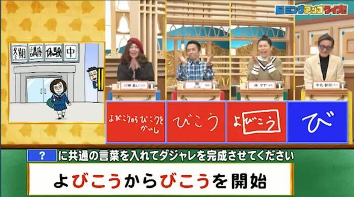 中丸の答えは、「び」。そこから先が出てこなかったか…残念!