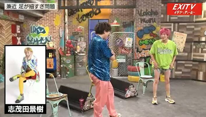 履いているズボンをめくって兼近が足を見せると、りんたろー。は、「ほっせ~!」を連呼して驚く。「歩かなくなったせいでどんどん細くなる」と言う兼近に、「おじいちゃんじゃん!」とりんたろー。は大爆笑。