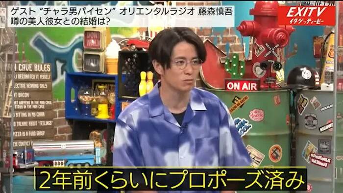 また、藤森は4年近く付き合っているという噂の彼女との結婚問題についても言及した。2年くらい前にサンフランシスコの丘の上で海を見ながらプロポーズしたと明かし、「ごめんごめん、まだそんなの考えられない」と、用意周到に準備したプロポーズが失敗に終わったエピソードを披露した。