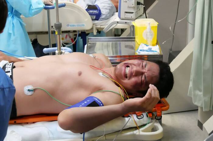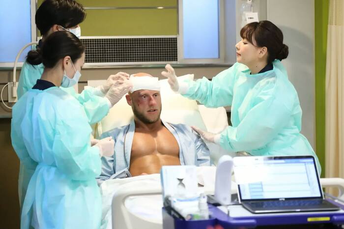 3人は試合中にケガをして、救急搬送される総合格闘家役を演じている。救命救急センターで待ち構えるのは、主演の波瑠、田中圭、岡崎紗絵らが演じるドクターと、野呂佳代扮する看護師たちだ。腹部外傷、助骨骨折など重傷を負ったファイターたちの巨大な体に驚きを隠せない彼らは…。シビサイ選手にはセリフまで与えられ、3人はNGを出さず撮影を乗り切ることができたのか?