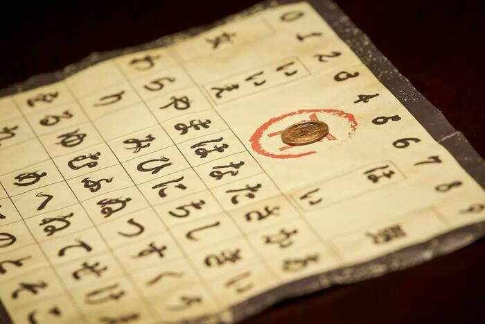 第1話で登場した「コックリさん」。ご存じの方も多いと思うが「コックリさん」とは、一枚の紙に「はい」「いいえ」「五十音」などを書き、その上に硬貨を乗せ数人が人差し指を添えて質問をすると、ひとりでに硬貨が動くという占いの一種。