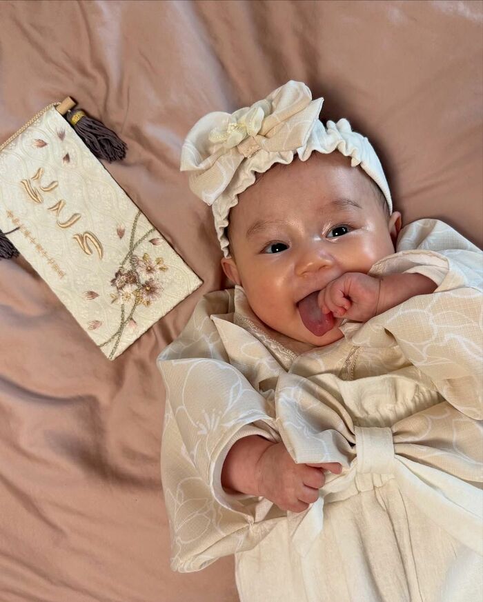 11月に投稿された生まれたばかりの時の写真と比べると、大きく成長し、顔立ちもはっきりしてきたことが分かります。目元は、ぱっちり二重で、パパ・ママにそっくりですね!