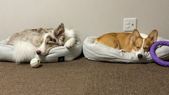 「ボケの打ち合わせ完璧にした?」2匹のわんこの“ハウス”にSNSで大反響