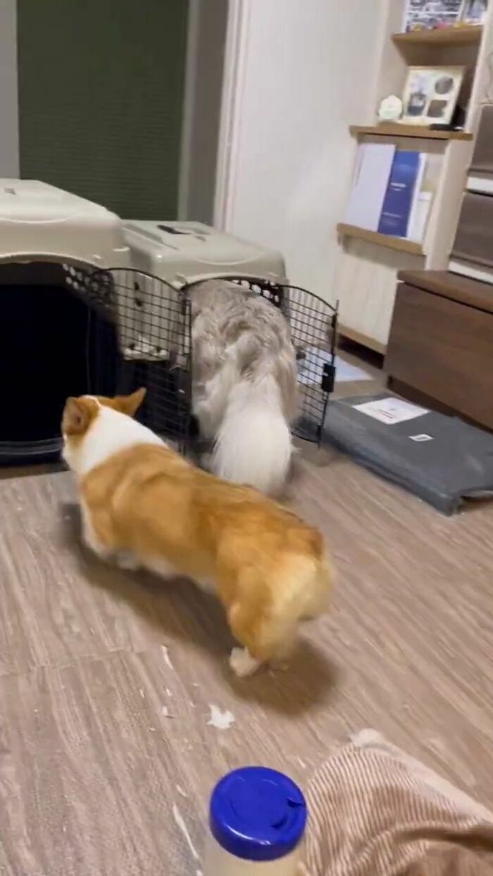 今回話題となったのは、投稿者である飼い主が、「逆逆ゥ!!!」というコメントとともに公開した、もなかちゃんとラグナくんが“ハウス”を練習しているときの動画。