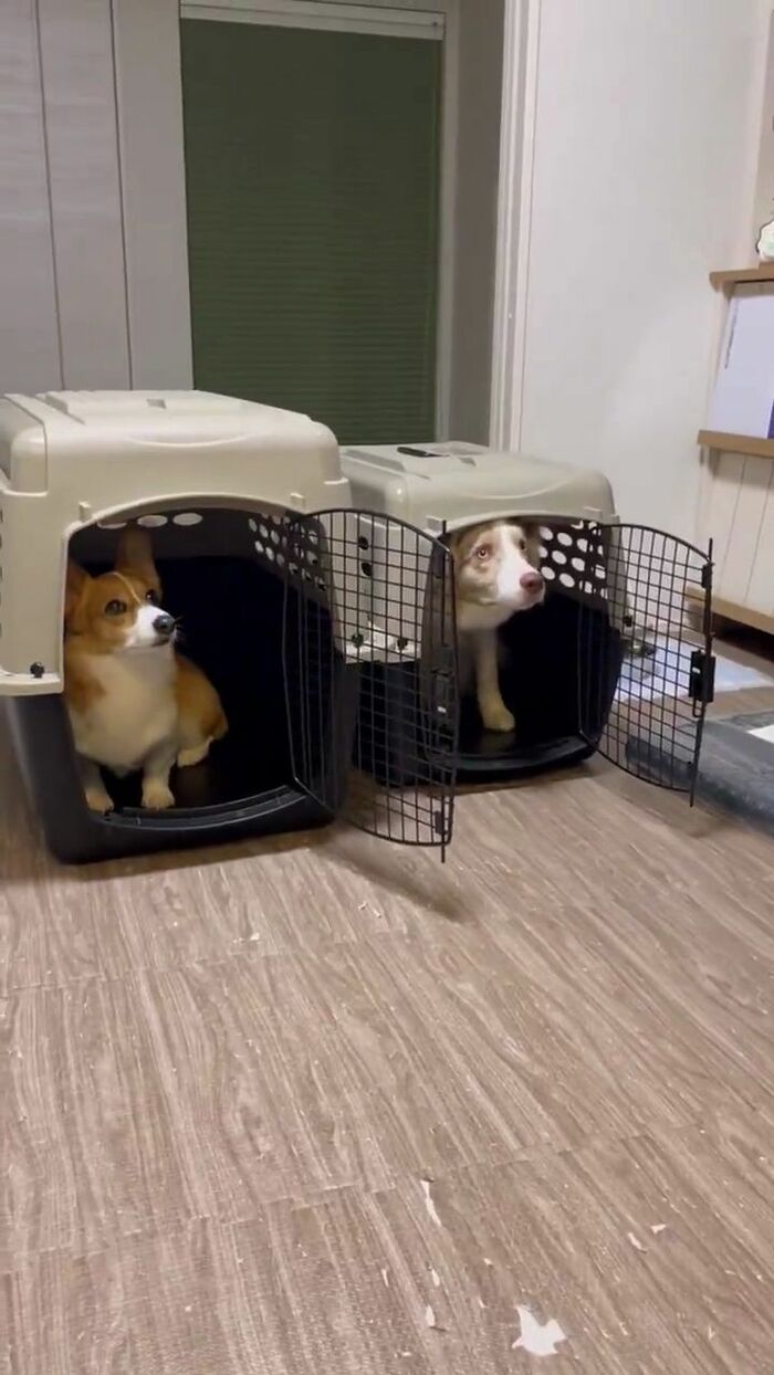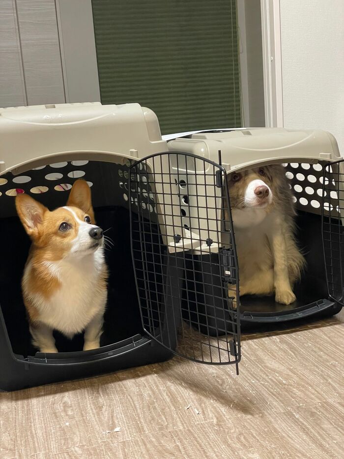 そして、なぜキャリー逆に入ってしまったのかを聞いてみると「この動画を撮影する少し前にもなかだけ小さいクレート(キャリー)に入る練習をさせていたので、ラグナがそれを見てハウスと言われたら小さい方に入るものだと覚えてしまったのだと思います。(もなかは小さい方に既にラグナが入ってしまった後だったので仕方なく大きい方に入ったのではないでしょうか)」と明かしてくれました。