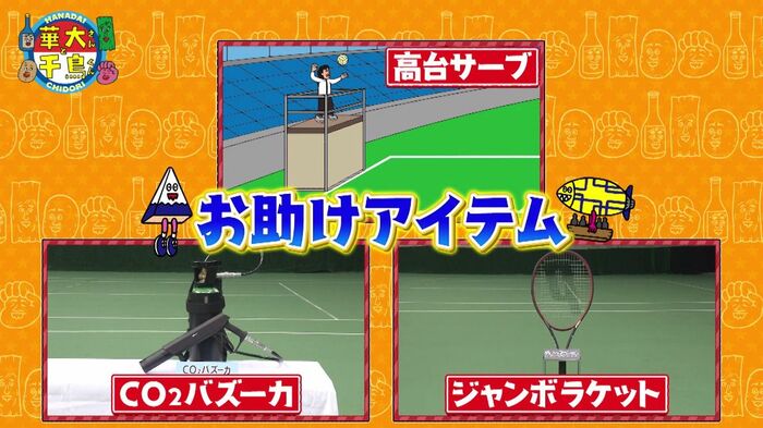 さらに、華大千鳥チームには、2mの高さからサーブを打てる「高台サーブ」、白いガスを噴射して敵チームの目をくらませられる「CO2バズーカ」、大きな面で強力なスパイクを打てる「ジャンボラケット」という、お助けアイテムが用意されました。