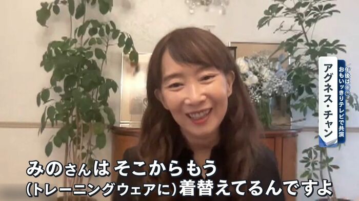 それを見せたがるんです皆に、「私の足の筋肉を見てください」って。毎日行っているんですよジムに。番組が終わって(出演者が)みんなエレベーターに乗るんですけど、もう みのさんはそこから(トレーニング衣装に)着替えているんですよ。
