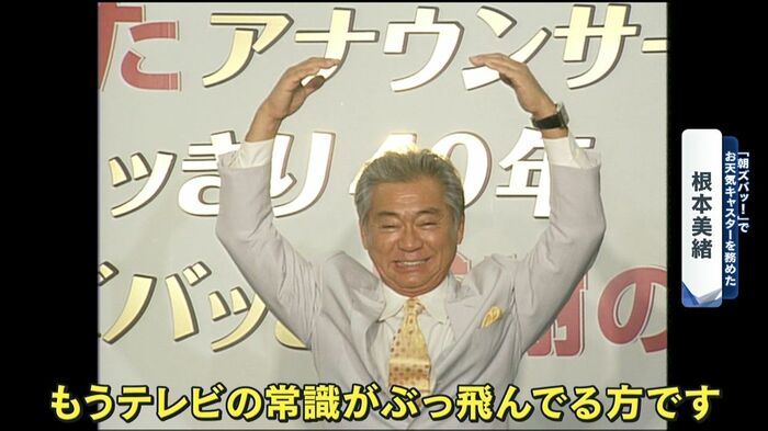 一番衝撃だったのは、(私が)週刊誌に書かれちゃったことがあったんですけど、その日の「根本くん」の呼びかけが、それ(週刊誌)をこうやって持って「根本くーん」と呼んできた。もうテレビの…常識がぶっ飛んでる方です。