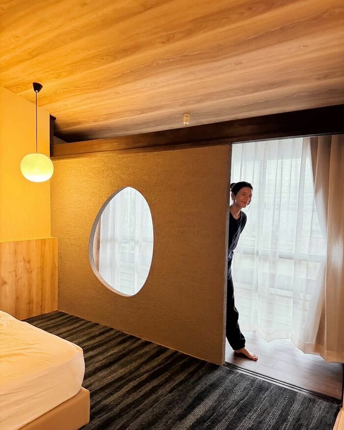 また、投稿文では「東京からだいすきたちが#kawachibase 泊まりに来てくれたり(わたしもはじめてちゃんとお客さんとして泊まった)福岡からや幼なじみが遊びにきてくれたり」と、週末は自身の旅館で過ごしたことを明かしたスザンヌさんは、ウッド調であたたかみを感じられる和モダンな旅館の客室でのショットも公開!