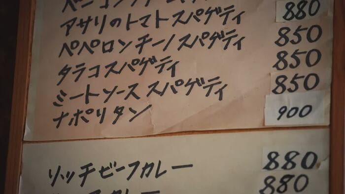 「らい」では、劇中の回想で登場したミートソーススパゲティ(850円)や、ナポリタン(900円)など、スパゲティも人気。店の雰囲気同様、どこか懐かしさを感じられる逸品だ。