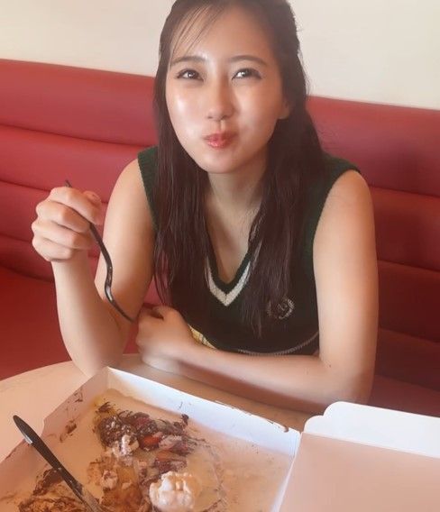 同時に投稿された動画では、少し近めの距離で幸せそうにパンケーキを頬張る田中さんの姿が。