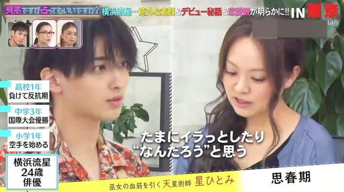 10月21日(水)、フジテレビでは『突然ですが占ってもいいですか?』が放送され、横浜流星が星ひとみによる占いを受けた。