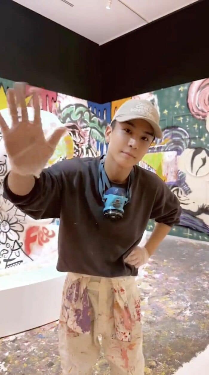 現在開催中のエキシビジョンで得意のアートを披露している岩田さん。「Mission Completed」とつづり、自身の作品がついに完成したことを報告しています。