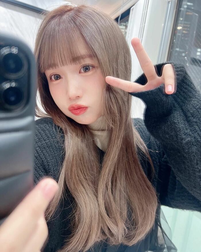 そこには、胸下あたりまで伸びた茶髪のロングヘアに前髪をぱっつんにそろえた、るなさんの姿が!ショートヘアの時とはまた違った雰囲気になっていますね。