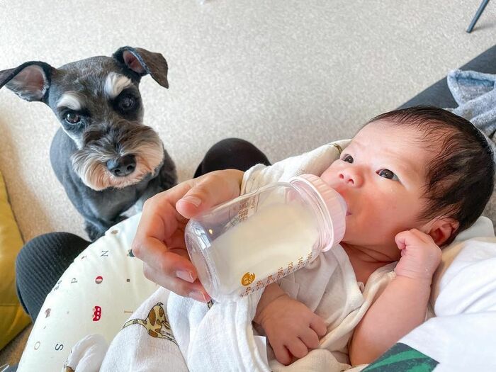 そんなルークくんの元に、2023年6月頃、飼い主さんの赤ちゃんがやってきたんです!当時は「興味津々で僕にも見せて〜!」と飛びつくほど、テンションが高かったそうですが、一緒に生活するに連れて、そばでいつも静かに見守ってくれるようになったといいます。