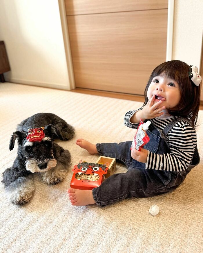 ワンちゃんのことが大好きな1歳の女の子