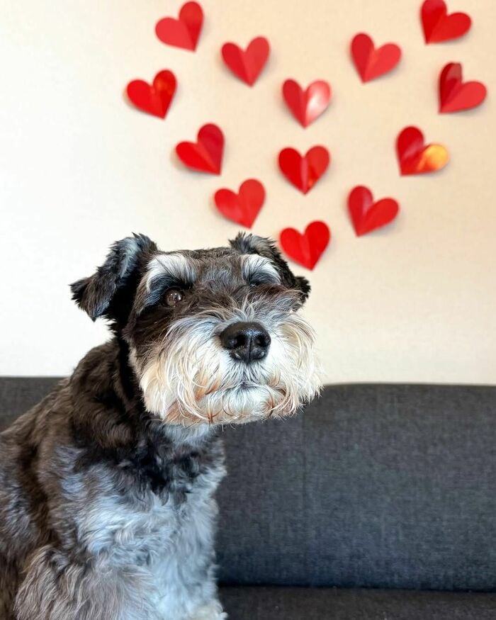 つぶらな瞳が印象的な8歳のミニチュア・シュナウザーの「ルーク」くん。優しく穏やかな性格の持ち主なんだそうで、飼い主の言うことはしっかりと聞いてくれるお利口さん。