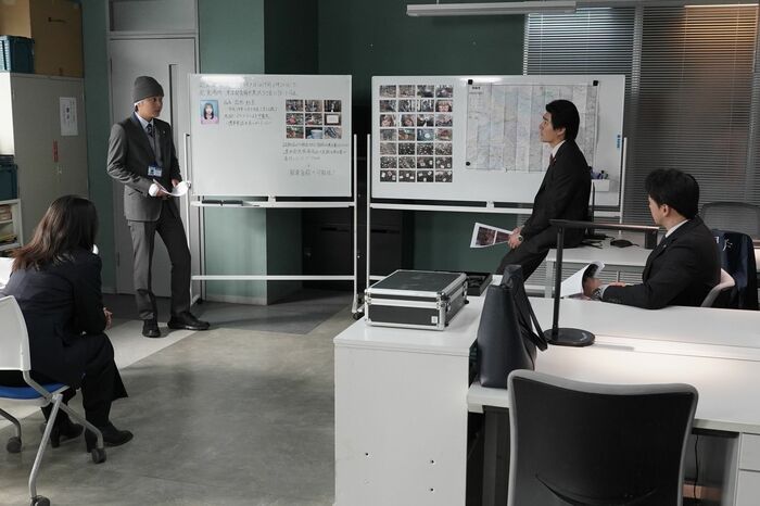 進藤から話を聞く氷月と木皿。カードの文言を見た進藤は「これは僕に宛てた遺言だと思う」と話す。